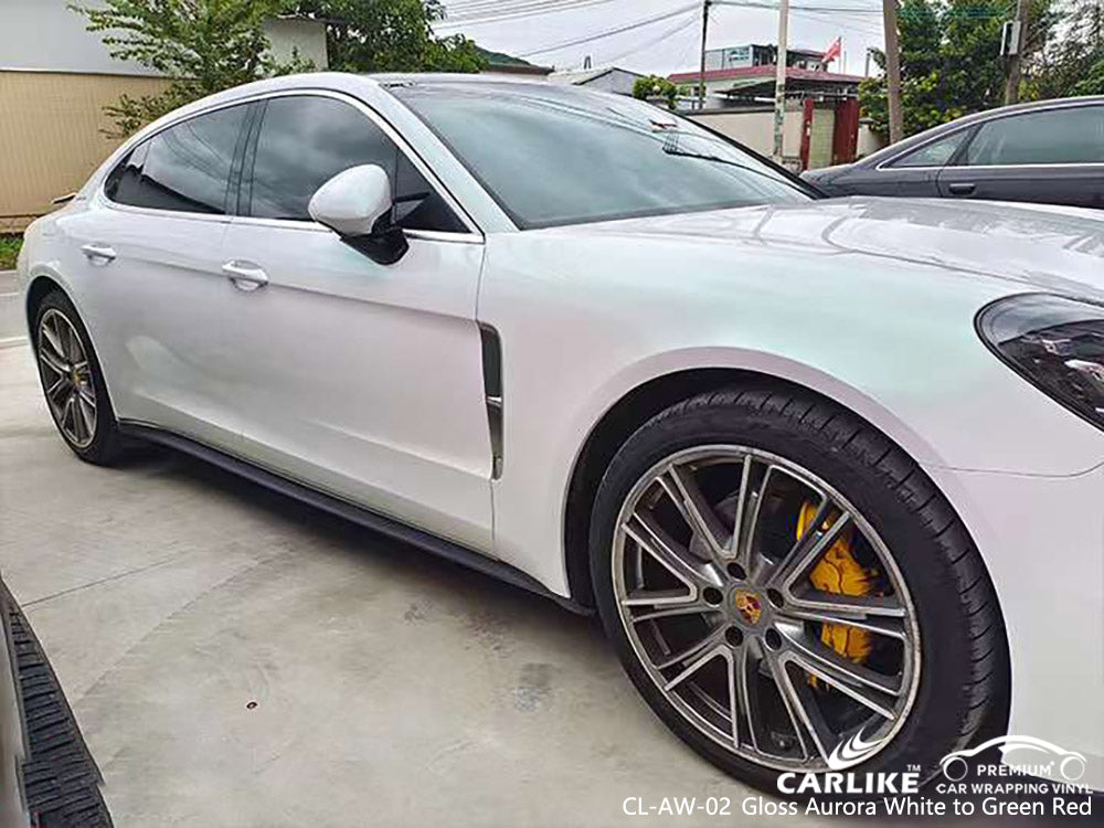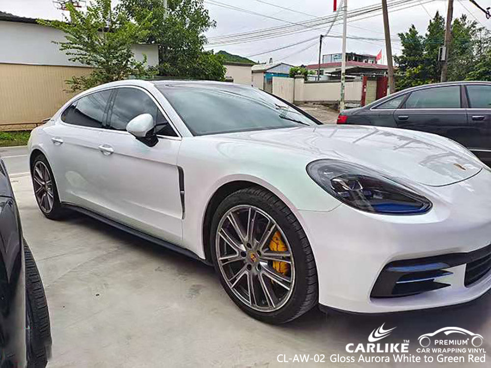 CL-AW-02 gloss aurora white to green red vinyl for porsche